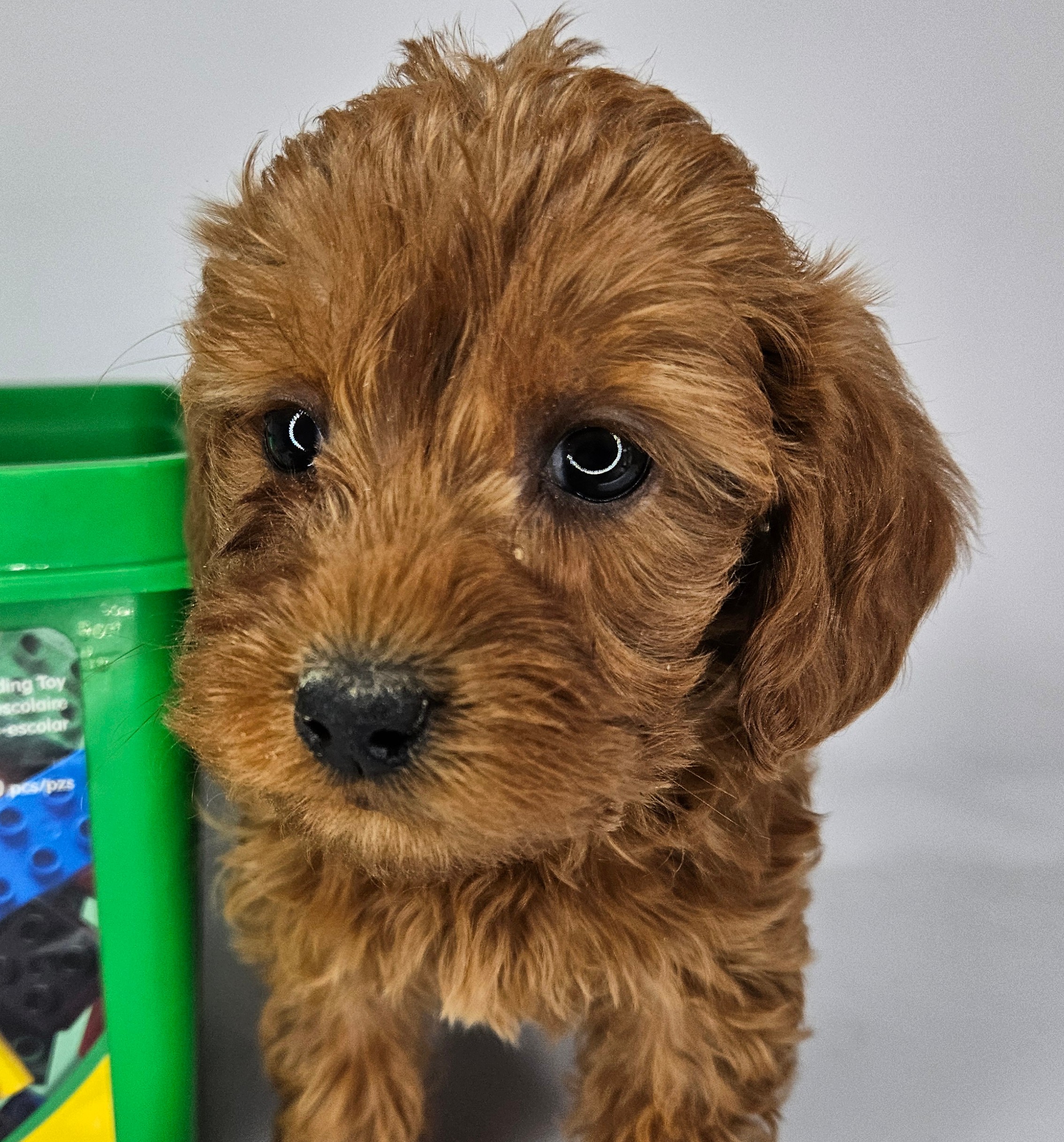 Our Mini Labradoodle "Daisy" (14 lbs) has been matched up with health-screened little AKC Toy Poodle "Rex" (8 lbs) to produce a healthy litter of mini F1b Labradoodle puppies. These pups will be ready for their new homes toward the end of December. The pups are sure to bring smiles to many happy families. We anticipate a full grown weight somewhere between 8-12 lbs.